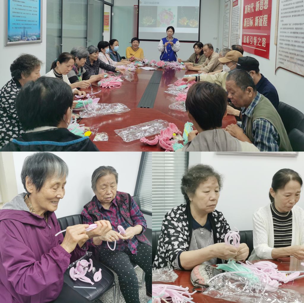 在公祥街社区活动室,社工带领居民一起制作扭扭棒荷花灯。居民对此次活动表现出浓厚的兴趣,纷纷积极参与,社工依次向参加活动的居民们发放荷花灯材料包,并详细展示了制作步骤。居民们迫不及待地打开材料包,按照步骤去拧、缠、粘,不起眼的手工材料经过大家灵巧地制作、装饰变成了精致的荷花灯。