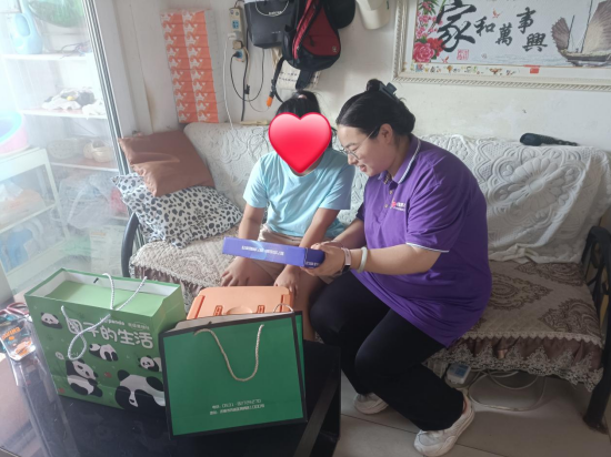 久违的见面增添了些许的变化与惊喜,圆润的脸颊,变声的尴尬,为了学业放弃的鼓手梦想以及谈及学习成绩时狠狠地比划出“1”时的激动与喜悦。青年公园街道社工站根据孩子们的喜好定制了不同的礼物,酷爱画画的小鱼儿的画笔颜料套装,能让佳阳、佳辉兄弟俩博弈一番的桌游,以及梦想成为茶艺师婷婷的茶具。除了孩子们的礼物,还有单独为大人定制的礼物,社工站社工将收集到的无障碍电影拷贝到U盘之中赠予视力障碍的家长,收到礼物的家长也会向孩子炫耀一番,以后周末观影的约定便由此生成。