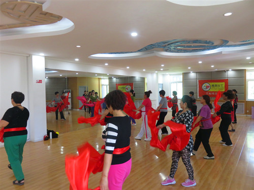 活动伊始,项目社工点名并强调小组规章制度后,舞蹈老师带领成员们开始了今天整套衔接舞蹈新教程的学习,伴奏播出优美的旋律,秧歌扭出美好心情;随着优美的旋律,成员们个个精神抖擞、步伐矫健,伴着欢快的舞步,扎着红绸缎,尽情地挥洒着夏天的激情;成员们用民间艺术的形式歌颂党的好政策,表现出新时代回迁失地老人对美好社区生活的热爱。最后舞蹈老师与成员们一起讨论并总结今天学习的新课程,舞蹈老师根据练习中出现的问题分享了改进建议,小组成员虚心接受老师的提议,今天的课程圆满结束。