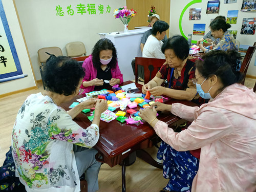 此次端午节活动在南辛苑社区韩主任的致辞中拉开了序幕,韩主任对于大家的到来表示真诚地感谢,并为大家送上了端午问候与祝福。接着由社工站社工带领大家进行“天气预报”热身小游戏,大家一起“拍拍肩”、“敲敲腿”、“跺跺脚”,营造了一片热闹、祥和的氛围。之后,开始此次活动的重头戏——“捏泥人”。社工及社区工作人员为大家分发了橡皮泥和图纸,居民可以按照图纸的步骤一步一步地捏,也可以自己随意发挥。拿到橡皮泥之后,老人们迫不及待地上手捏起来,“捏个眼睛”、“拿个红颜色的泥捏个嘴巴”、“我捏个花”、“我捏个包子”,不一会儿“小乌龟”、“小粽子”、“小恐龙”等各式各样形状的泥人出现在老人们手里,大家都捏得乐不思蜀,看着手上的作品满满的成就感。最后,以一张大合影结束了此次活动。