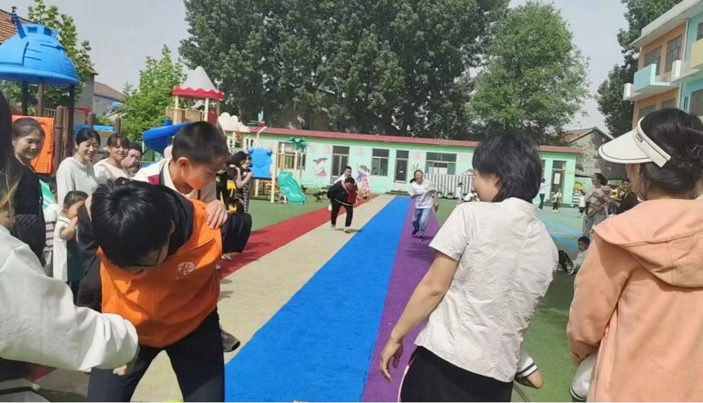 猪八戒背媳妇环节中,由于有些孩子的父母在外地未能到达现场,为了避免孩子失落,两位社工化身“社工妈妈”,先后加入了活动之中,与家长们一起背着孩子们跑向终点。孩子们积极配合,洋溢着笑容,家长们挥洒着快乐的汗水。孩子们开心的说:“谢谢叔叔阿姨背我!”最后拔河大赛环节,社工与家长们一起,紧张、激动的心情涌上心头,老师们为参赛成员高声喊着:加油!加油! 比赛结束后,孩子们也认识到了“输赢不重要,参与过程更重要,安全最重要”的道理。
