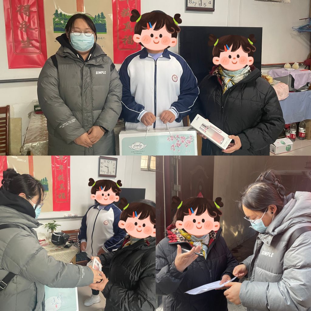 每到一户,社工都详细询问孩子们生活和学习中遇到的困难及家庭监护情况,了解孩子们所需所想,向家庭宣传社工站的相关服务及活动,鼓励孩子们走出家门,增强社会参与,同时为他们一一送上御寒的毛毯和保温杯。过程中,社工基于优势视角理论,同时巧用倾听、支持等会谈技巧,及时为困境儿童及其家庭传递正向的反馈,减轻其因目前处境而带来的内心焦虑。