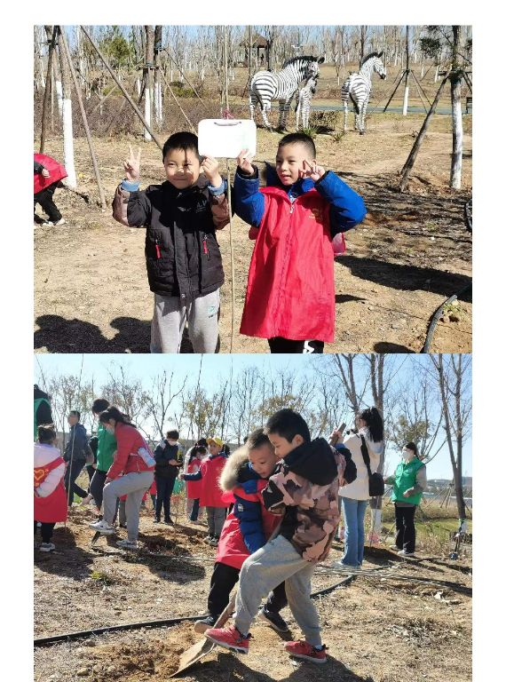 活动现场,同学们分成小组,在社工的带领下一起植树,有的挥锹挖坑,有的扶树培土,有的提水浇灌,彼此间相互协作、配合默契,忙得不亦乐乎。看着自己亲手栽下的小树苗沐着和煦的春风,沐着明媚的春光,大家的脸上都露出了灿烂的笑容。