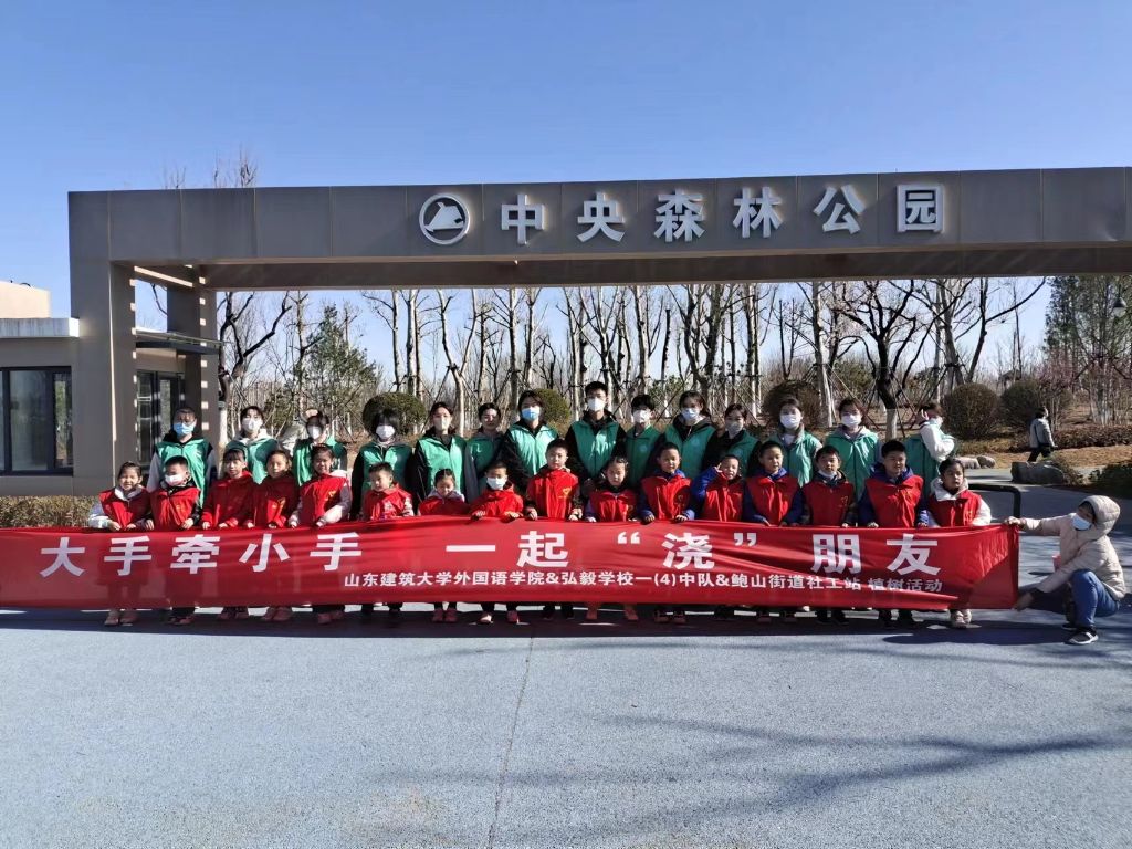 为培养青少年“植绿 护绿 爱绿 ”环保意识,使青少年能够积极与大自然“对话”,促进亲子家庭关系,值此植树节来临之际,鲍山街道社工站联合山东建筑大学志愿者团队、济南市历城区弘毅学校一(4)中队一同开展“大手牵小手,一起‘浇’朋友”植树活动。