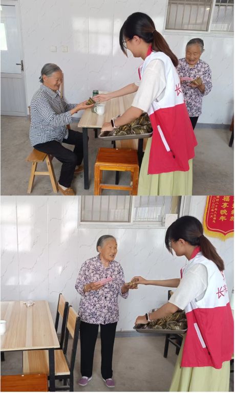 折粽叶、填糯米、塞馅料、裹叶子、扎棉线……一道道工序有条不紊,社工和志愿者们传授着包粽子的技巧,在大家的共同努力下,形态各异的粽子应运而生,社工将煮熟的粽子第一时间分发给老人,大家更是围绕端午节的由来、风俗、屈原诗歌中蕴含的廉洁文化,“青色的粽叶、白色的糯米,清清白白正是粽子的深远寓意”,为包粽子这一环节增添了浓厚的文化气息。