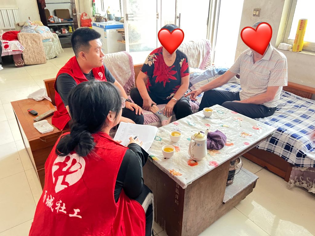 活动开展前期,社工站对社会救助对象进行分类,此次入户群体主要为困难失独老人家庭。入户过程中,为困难家庭送去爱心物资,详细询问其近期生活状况,并对其提出的问题进行耐心解答,同时对临时救助、特困供养、残疾补贴申请等保障政策进行详细讲解。驻站社工秉持民政为民、民政爱民、以民为本、为民解困、服务民生的基准,在入户张阿姨(化名)家时,得知她与其丈夫均得了癌症,医疗费用让本就不富裕的家庭雪上加霜,社工立即联系街道社会事务科相关工作人员对其家庭情况进行评估,并制定救助方案,与此同时叮嘱张阿姨留好医院发票,后期可申请大病救助政策。“感谢党,感谢政府”,张阿姨不时地拉着社工的手表达内心的感激之情。