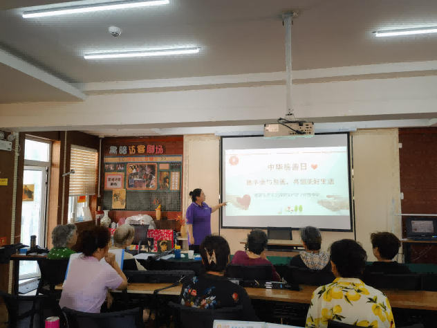 此次活动以讲座与外展宣传方式进行。在和合小院三楼活动室中,慈善宣传活动正紧锣密鼓的展开,不同于以往传统的慈善宣传形式,青年公园街道社工站的社会工作者们以社区内居民真实的慈善公益行为作为故事的开头,拉开了本次“中华慈善日”宣传的帷幕。一个个生动的服务故事深深吸引着居民,伴随着故事的讲述,社工通过提问的方式,充分了解居民对于慈善公益的了解程度,并结合前期青合站“公益项目认领”系列活动的反馈,为居民做出说明,为之后多元活动的开展奠定了基础。