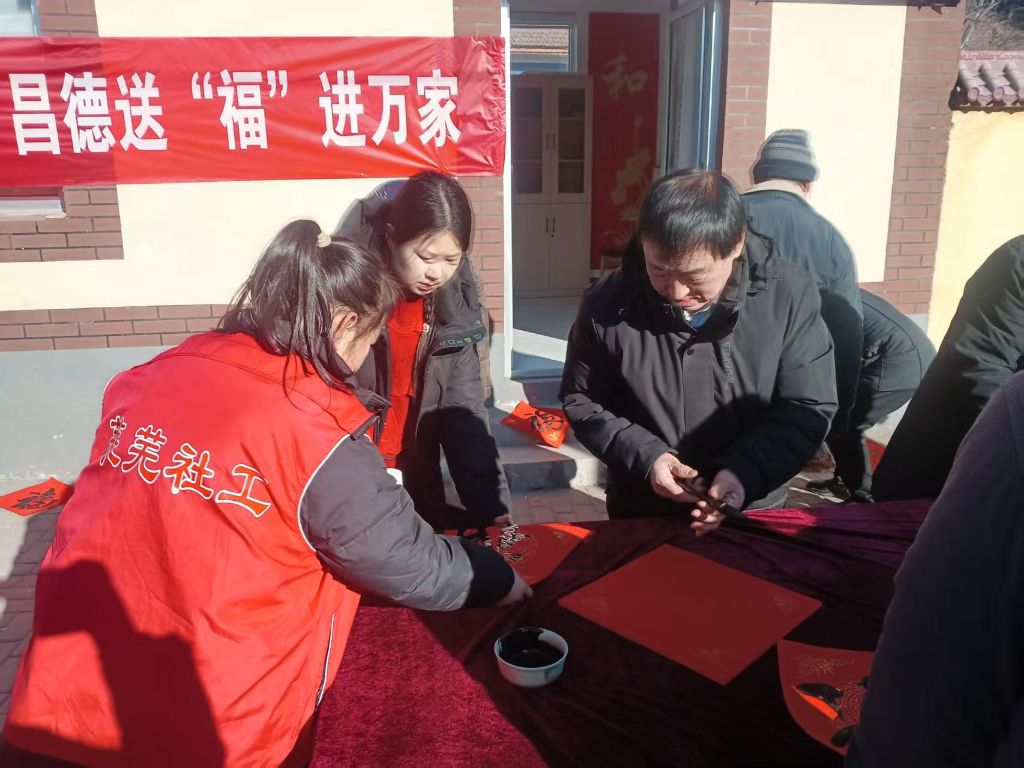 为了传承中华传统文化,丰富老年人的精神文化生活,1月17日,和庄镇社工站链接和庄镇宣传办邀请著名书法家在和庄大集开展了一场以“福满人间,情暖老人心”为主题的社区活动,旨在为老年人送上新春的美好祝福。