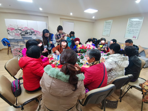 为丰富南辛庄街道辖区内失独家庭的业余生活,提高其动手能力,特通过开展丰富多彩的工艺花制作活动,充分发挥失独家庭的主动性和创新精神,让他们的晚年生活在精神和物质上得到宽慰。槐荫区南辛庄街道社工站联合南辛庄街道计生协于11月26日上午,在南辛庄街道二楼家园中心暖心家园活动室开展“情恩再相聚,暖心在行动”特别活动,积极为辖区内失独老人营造温暖欢乐祥和的氛围。