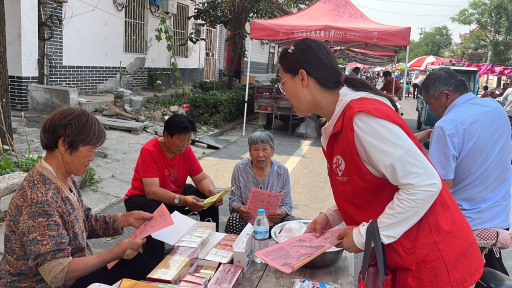 村民们纷纷驻足,接过传单,认真阅读起来。有的村民还和社工们交流起自己对端午节的记忆和感受,现场气氛十分热烈。