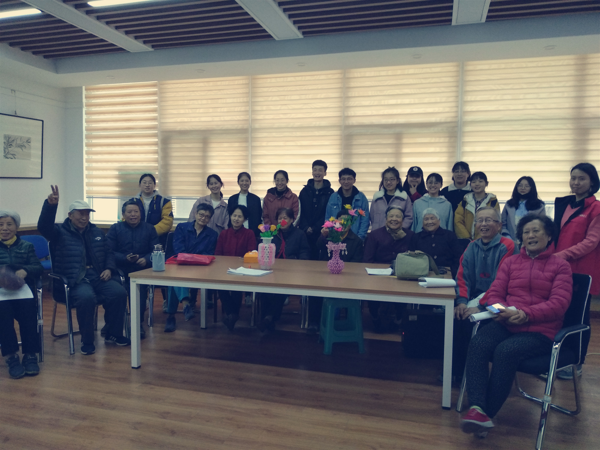 4月10日下午,项目组邀请到济南大学教育与心理科学学院心泉青年志愿者协会成员十余人,来到新世界阳光花园社区,一起加入“微能量”志愿者队伍,并协助社工开展“老顽童”智能手机互助小组。