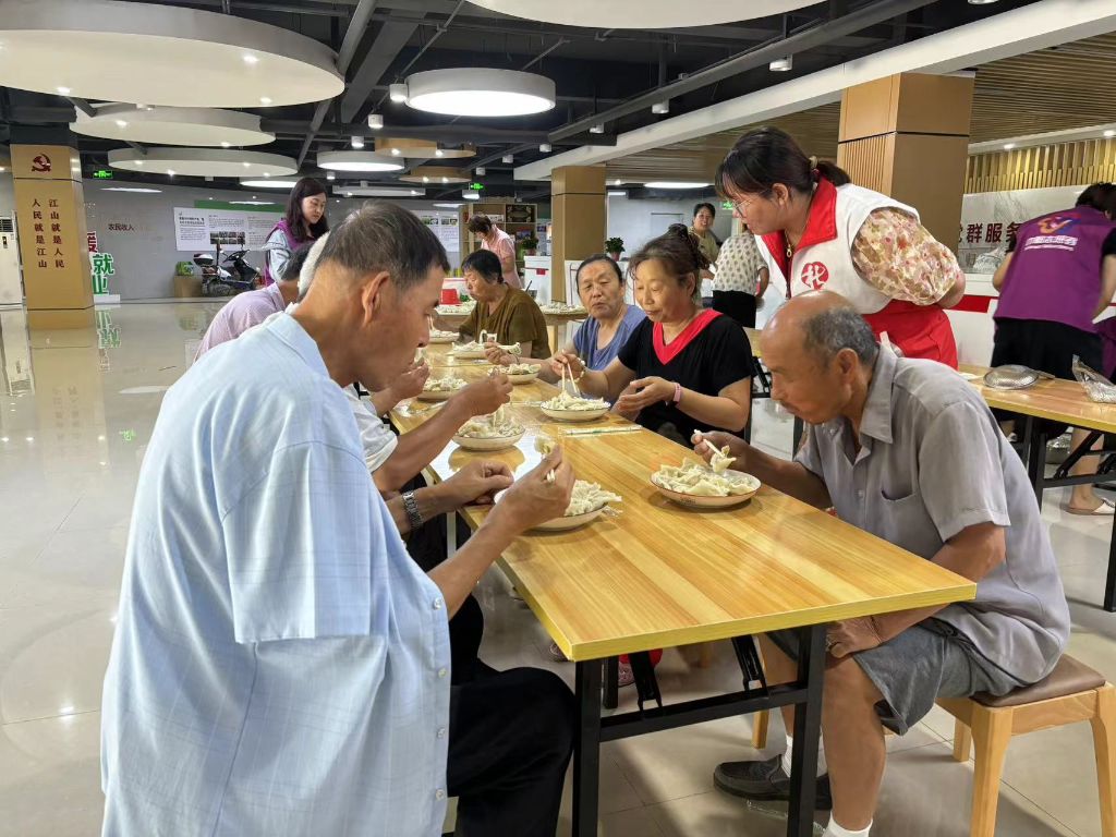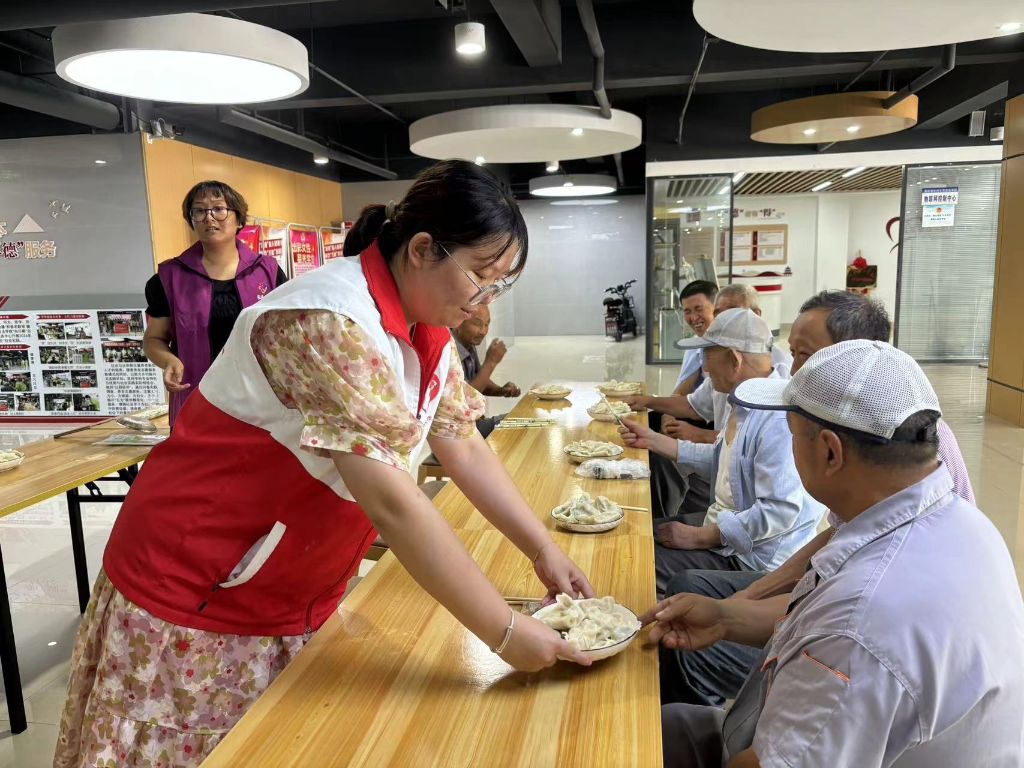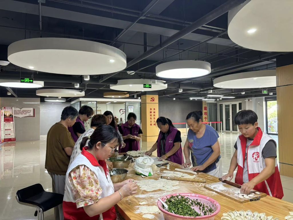 活动当日,崇德苑社区沉浸在一片欢乐与和谐的氛围中。长者们欢聚一堂,共同参与这场温馨四溢的饺子制作庆典。社工和社区骨干与长者们并肩作战,他们手法熟练,擀出的饺子皮薄如蝉翼,圆润而诱人;馅料则是经过精心挑选与调配,鲜美异常,每一口都仿佛能勾起人们对家的深深思念。在众人的默契配合下,一盘盘形态各异、香气扑鼻的饺子逐渐堆积成山,它们不仅仅是食物,更是社区对长者们深情厚意的象征。