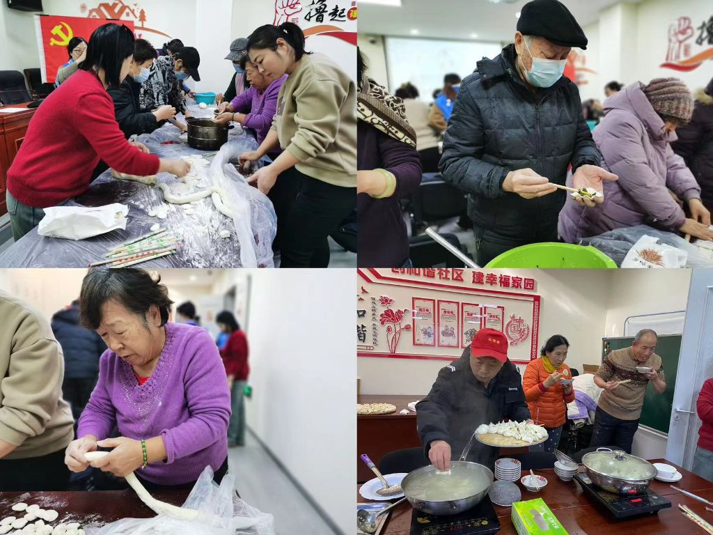 活动开始前,志愿者们准备好了食材和包饺子工具,居民们也早早地来到了活动室,大家分工协作,交流分享自己的方法和经验,切菜、调馅、揉面、擀皮、包饺子,忙的不亦乐乎!聊着家常话,叙着邻里情,屋子里充满了欢声笑语,展现出一幅温馨的画面。“要是我自己在家,包几盘水饺自己吃,一点儿也没意思,这样跟大家伙儿一块热热闹闹包水饺多好”社区居民张阿姨对社工笑着说。不一会儿一盘盘热气腾腾的饺子就出锅了,大家品尝着热乎乎的饺子,心里边儿暖暖的,嘴里也一直说着饺子真香,在其乐融融的氛围中大家共同感受社区“家”的温暖。