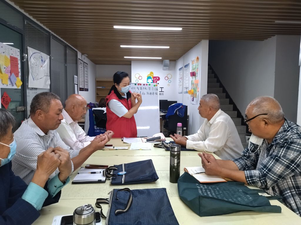 依据老年人阶段生理变化,为满足健康维护需求、提升手指灵活度、手脑协调能力,社工为组员量身定制“手指变变变”热身游戏。在游戏环节中,由于每位叔叔手指灵活度及视觉体验不一,社工耐心讲解“手指拼搭”步骤,通过多角度、反复性演示,一对一手把手教授,很快组员手上都展现出一只只“活灵活现”的小青蛙。“这个手指游戏看着真容易,做起来还真是有点难度,多练习几次,就灵活多了!”耿叔叔开心地笑到。在欢声笑语中,现场氛围愈发活跃。在接下来的回顾环节,社工以分组提问方式邀请组员一一分享,既巩固了上次活动的知识点,也增加了组员之间的沟通交流频次。