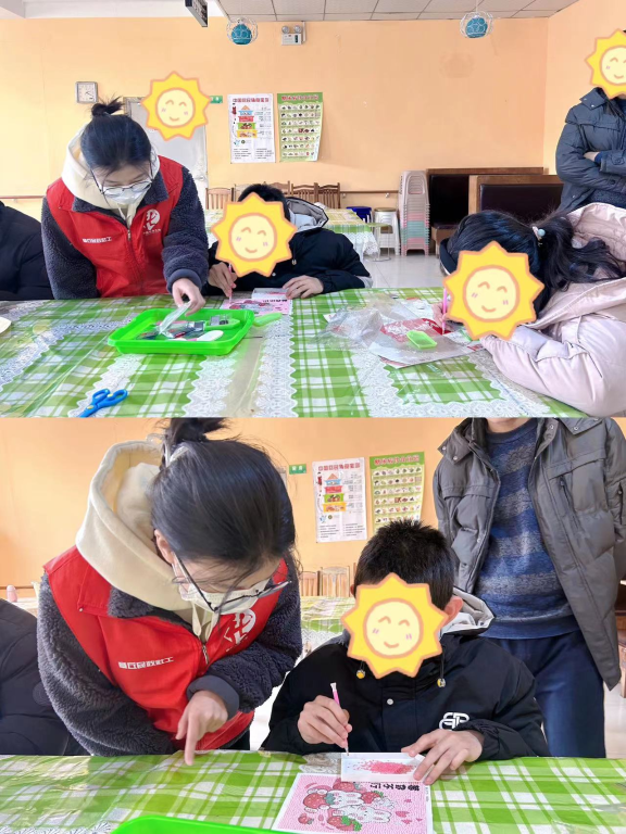 制作过程中,社工和志愿者对服务对象耐心引导,一步步演示制作方法。有些服务对象可以根据贴画的数字颜色指示独立完成,有些服务对象找不到下手点,社工鼓励旁边的服务对象指导他们怎么下手。部分服务对象提前完成了作品,社工通过一对一帮扶的形式,让能力强的服务对象帮助能力稍弱一点的服务对象,最终大家一同完成了钻石贴画作品。看见一朵朵美丽的花朵在自己的点钻笔下绽放,服务对象的脸上也绽放出灿烂的笑容。通过钻石画活动,可以开发残疾人对色彩的认知,锻炼了残障人士手眼协调能力,同时也锻炼了他们的耐心,提升知识与技能,为残疾人融入社会和康复奠定基础。