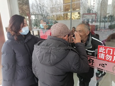 王大爷听说街道工作人员今天上午来看望他,早早就在大厅等候。大家刚到大门口,王大爷就在养老院里面看到了,如同看见亲人一般喜出望外。王大爷紧紧握着社工的手激动地说:“非常感谢你们能来看我,我在这里生活的很好,感谢你们,感谢党和政府的关怀。”