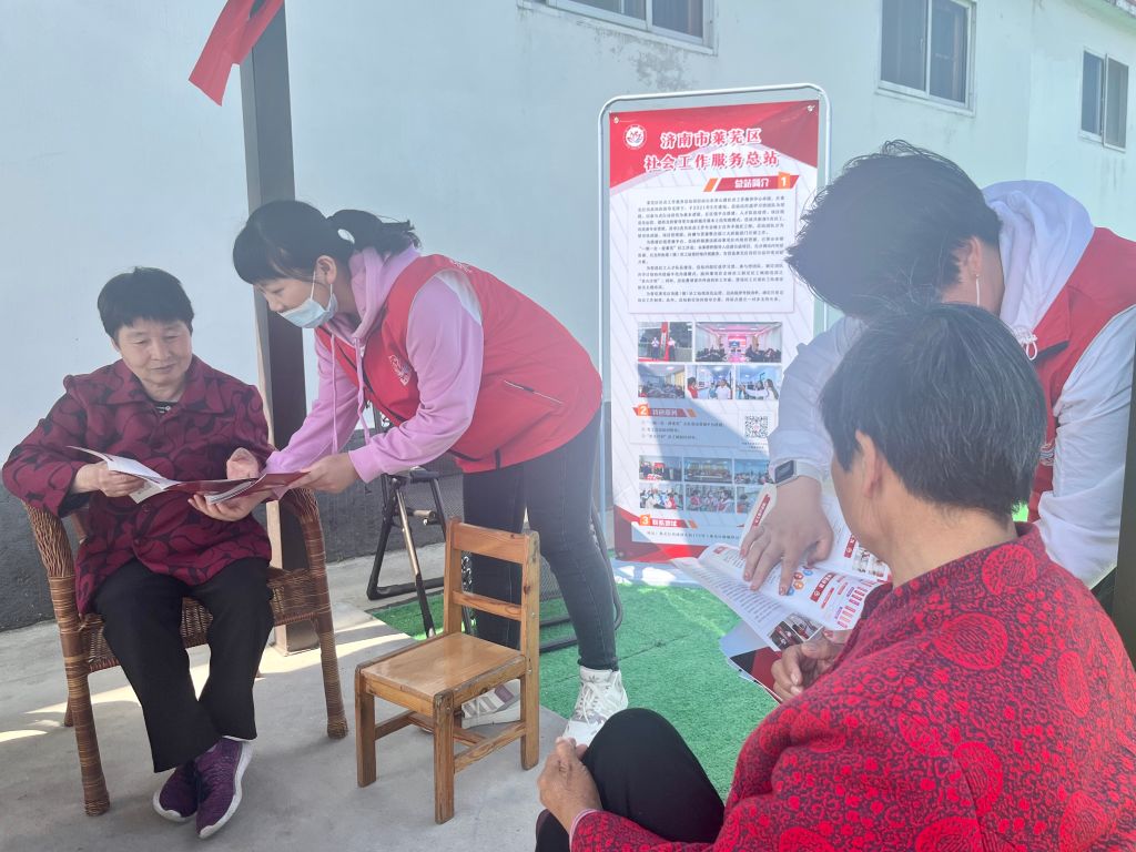 莱芜区社工总站前往牛泉镇贺小庄村幸福大院开展社会工作主题宣传活动