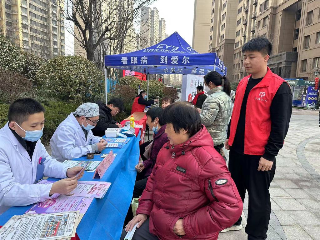 爱尔眼科的医生询问老人日常生活中遇到的眼部健康问题,医务人员通过视力测试、AI眼底照相等科学手段,依次为老年人进行视力检查、眼病检查和白内障筛查,同时普及了白内障、青光眼等眼科疾病的相关知识,解答了关于眼部日常保健相关问题,引导老年人关注视力健康,做到眼科疾病早发现、早治疗。