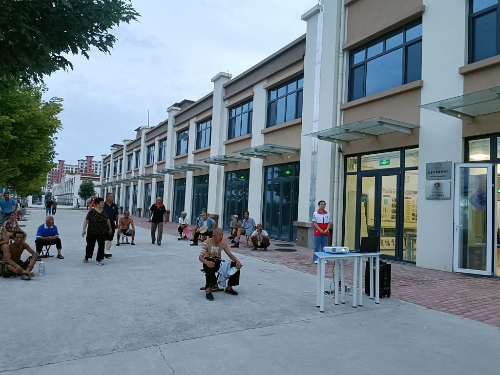 活动之前,志愿者在社工站门口拉起银幕,架上放映机。老人们早早的到达了放映地点,兴致勃勃坐在幕布前,等待电影开始。影片《英雄儿女》勾起了老人们对抗美援朝那场战争的记忆,一个个波澜壮阔的画面震撼人心,一句句掷地有声的话语扣人心心弦,中国人民志愿军的爱国情怀和斗争精神令人动容。