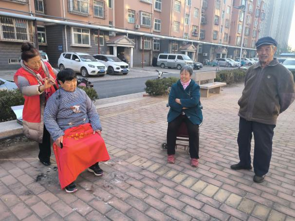 活动现场,志愿者在为老人剪发,有的老人说话不清楚,也不会表达思想,社工和志愿者耐心细致地对老人表达出这是在公益理发,等到老人了解后,志愿者便开始给老人剪发。视角转到另一边,郭店街道社工通过“1+1乐居服务包”在为有需要的居民量血压,讲高血压的注意事项,“我好久没量过了,你给我量一下”一位居民朋友说道。在另一边,社区工作人员、社工、网格员、志愿者和居民朋友拿着板凳围坐在一起,将所知所想的大事小事都拿来说一说,畅所欲言。居民李大妈反映:“希望社区能多开展一些针对老年人、孤寡老人、患病老人的志愿服务活动。”张阿姨反映:“暖气不热问题。”其他居民也都纷纷参加到讨论中来。针对居民提出的问题,现场能解决的,社区工作人员现场解答和解决;对于现场不能解决的“疑难杂症”,社工进行了分类梳理,通过倾听、澄清等方法收集问题做好记录,活动结束后联系相关部门,最大限度解决居民问题。