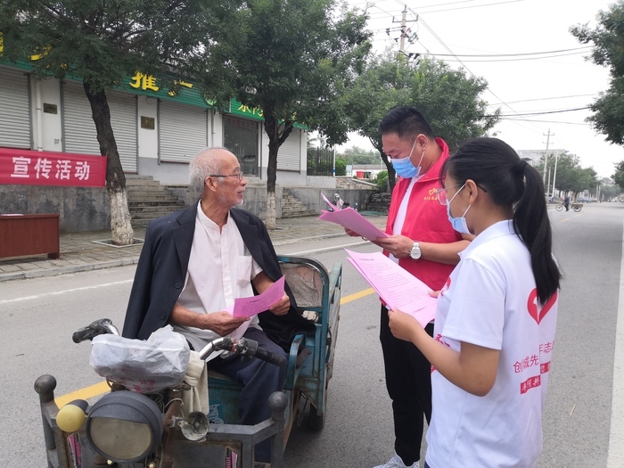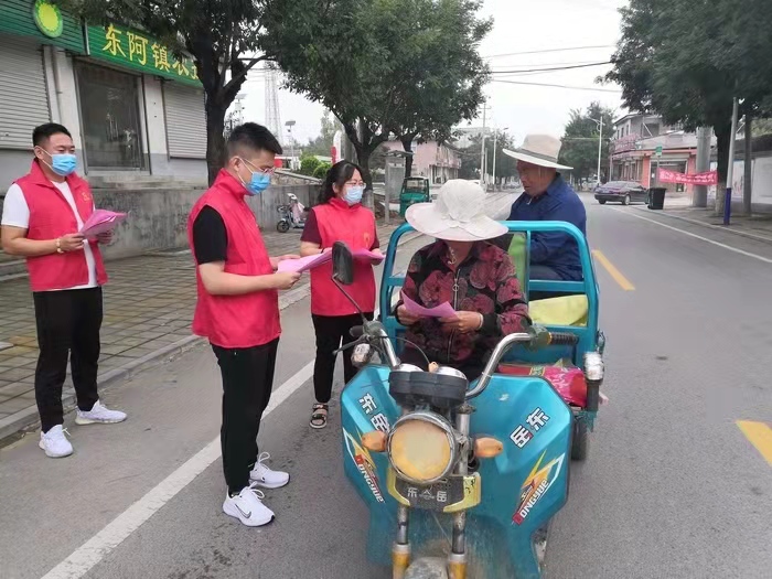 在9月5日“中华慈善日”来临之际,东阿镇民政办、社工站联合新时代文明实践志愿者、青年志愿者,在镇驻地通过悬挂条幅、发放宣传单页的方式开展《山东省慈善条例》进村庄、进社区集中宣传活动。