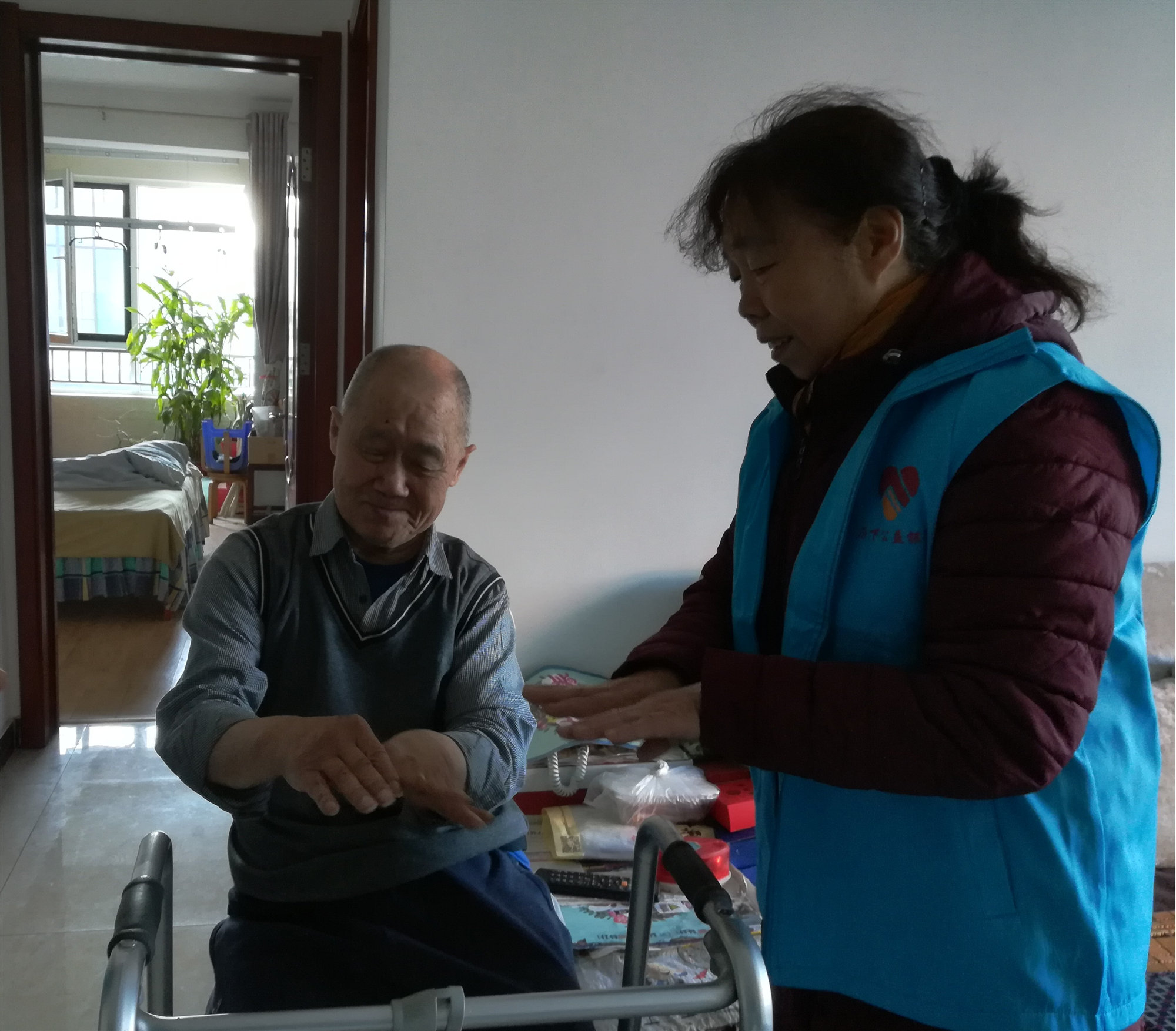 冬日的阳光,总是被北风打败,难得今天有如此温暖的阳光。仰望天空,阳光从云端倾泻下来,用她那柔柔的手,抚摸着大地。在晨光的沐浴下,甸柳第一社区的九点伴·助残爱老服务队已兴致勃勃进行入户探访前的准备工作。