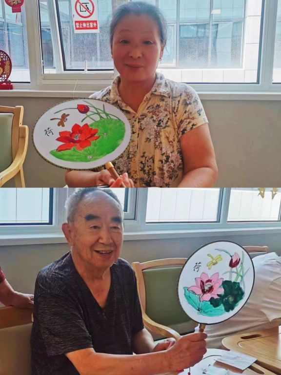 老人们挥着自己绘制的团扇,笑容满面,满满的幸福感和成就感,大家纷纷留下这美好的瞬间。此次团扇制作活动,让老人们体验到做手工的乐趣,感受到中华民族传统工艺的魅力,又增强了她们的创作能力。很多长者表示,这个活动既动手又动脑,对于提高老年人的脑健康大有帮助,这样的颐养生活很有意义。