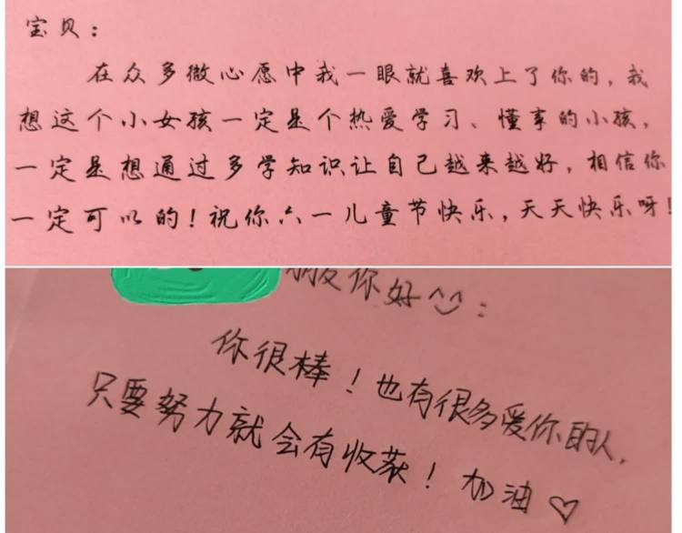 在派送微心愿过程中,社工发现部分礼物里面附带了小卡片,字里行间都是对孩子的关心和鼓励,小小的心愿,承载着大大的希望,助力儿童实现心愿,改善他们的学习、生活、发展等环境,用温暖和爱滋养他们的心灵,照亮他们的生活。