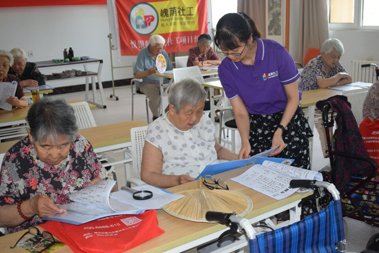 “鸿雁向南方,飞过芦苇荡。天苍茫,雁何往,心中是北方家乡。”6月20号下午3点,福利中心三楼老年大学里传出悠扬的旋律,这一想,便是悦银龄养老社工项目组社工组织的“乐响枫吟”合唱小组活动开始了。