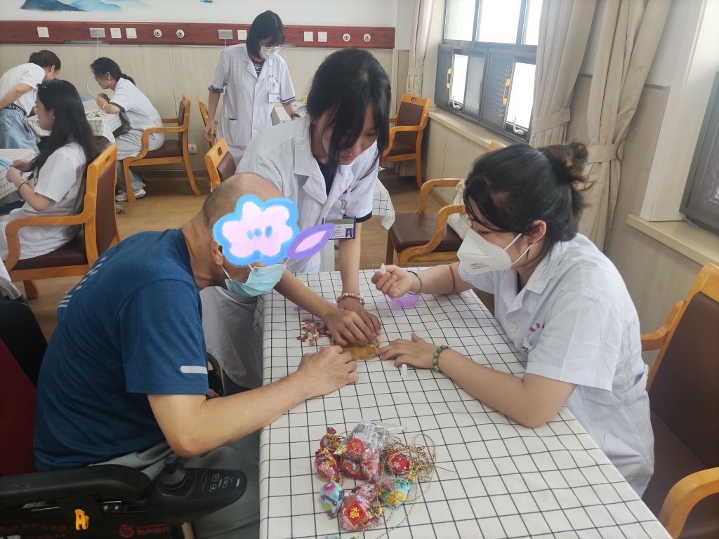 为了缓解患者和家属的焦虑情绪,提升患者的幸福感,满足其多样化发展,我院事业发展部联合医养康复科针对患者和家属的需求开展了“清凉月”公益活动。7月12日,以制作“马赛克DIY手工杯垫”为主要内容的第一次消夏活动暨“快乐医养”第78次活动圆满结束。医务社工带领山东建筑大学八位社会工作专业实习生,走进颐康厅,和几位患者一同进行手工制作。