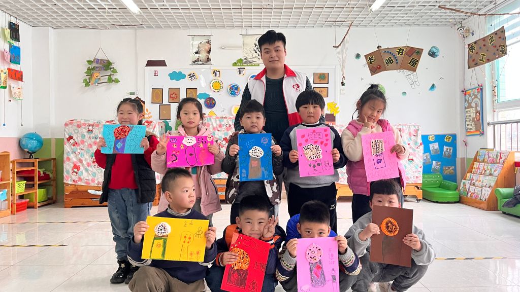 社工通过视频、照片和实物的形式孩子一起认识大豆、红豆等农作物,并与孩子一起制作“冬藏”谷物画。