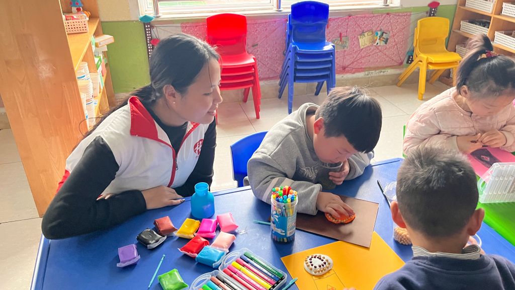 社工首先播放粮食种植短片,帮助孩子了解粮食从播种到成熟所需的辛勤劳作。