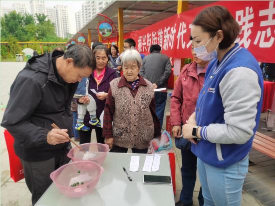 在各式各样的宣传摊位中,社工站的摊位显得有些与众不同。长条桌上摆满了服务对象制作的各类手工制品和用于置换的闲置旧物,社工站社工在摊位前热情地向老人们宣传社工站服务,并邀请他们参加社工组织的趣味小游戏。一时间,社工站的摊位前后围满了报名参加活动的老人。社工们耐心的引导老人们有序参加趣味游戏,并收集了老人们对社工服务的需求。