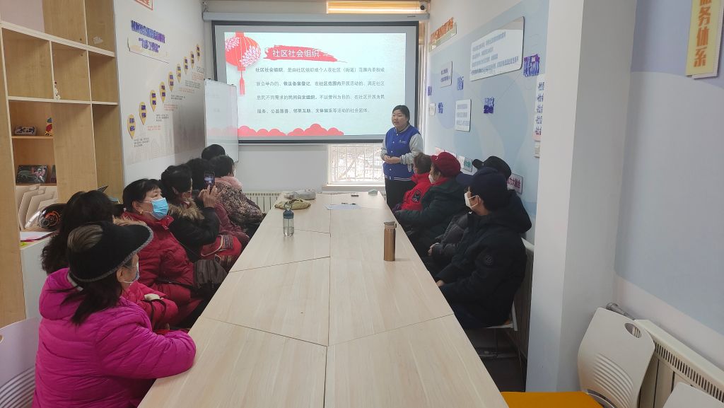 首先,社工向社区社会组织成员讲解了社区社会组织是什么,社区社会组织能够发挥什么作用,社区社会组织联合会可以为这些社区社会组织提供什么支持,让前来参与活动的服务对象明确自身身份及责任。