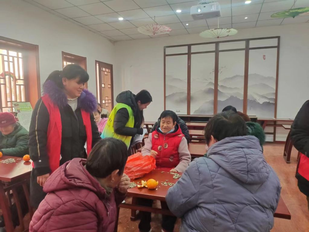 关于年味的话题我想每个人心中都有着独特的感触和理解。在茶话会上,社工首先自我披露,回忆了自己小时候过年的情景、习俗和美食,并表达了自己对年味的理解与期盼,接着,社工引导组员围绕年味中的美食和传统文化展开讨论。“唐爷爷,您给我们分享下您对年味的理解吧?”社工邀请道。“小时候,有肉吃,有鞭炮声,有孩子的嬉闹声就是年味;成年了,物质生活变好了,一家团圆吃着丰盛的年夜饭,看着春晚就是年味;老了,老了,有人陪伴就是年!”唐爷爷略带伤感的说。“是啊!是啊!”“孩子们爱吃的年货,要准备起来了,孩子们快回来了”王阿姨笑呵呵地说。大家你一言我一语的交流起来,现场氛围好不热闹......