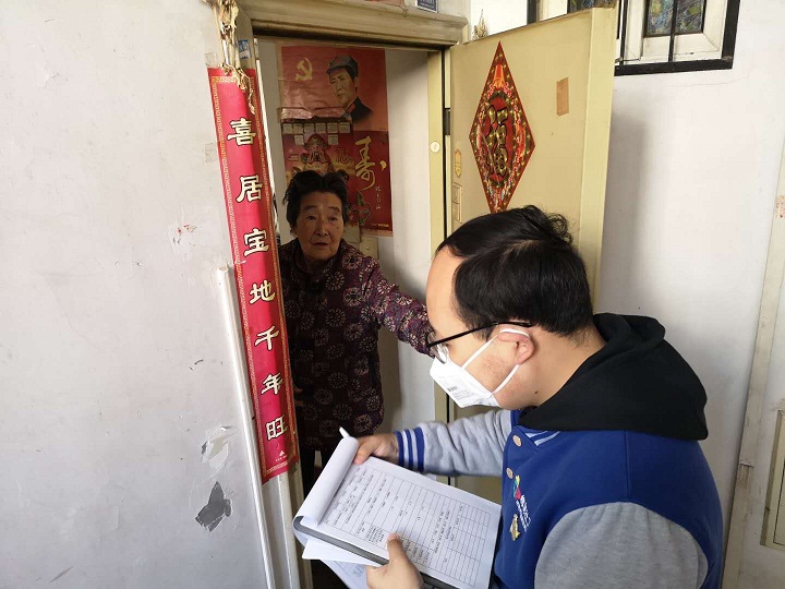 槐荫民政社工心引力项目组根据南辛庄街道相关要求,对接南辛苑社区开展社区防疫工作,除协助正常执勤外,还严格落实济南市疫情防控登记工作的相关要求,与社区工作人员、网格长等两两搭配,相互配合,先后在嘉和馨园、清新西区、玉景家园三个小区内,挨家挨户入户走访,由于部分小区未安装电梯,社工与社区工作人员、网格员一层层摸排,一张说明、一支笔、一个胶带、一面口罩就是社工的全部装备,通过引导社区居民扫描“二维码”的形式进行防疫信息登记,而对于年长者,社工则主动为老人进行防疫信息登记,全面走访清查,并将摸排数据汇总上报社区。每天入户下来,社工的步数总能到达一个“巅峰”,我们常常说笑着:“哈哈,看,我步数又超过你了!”