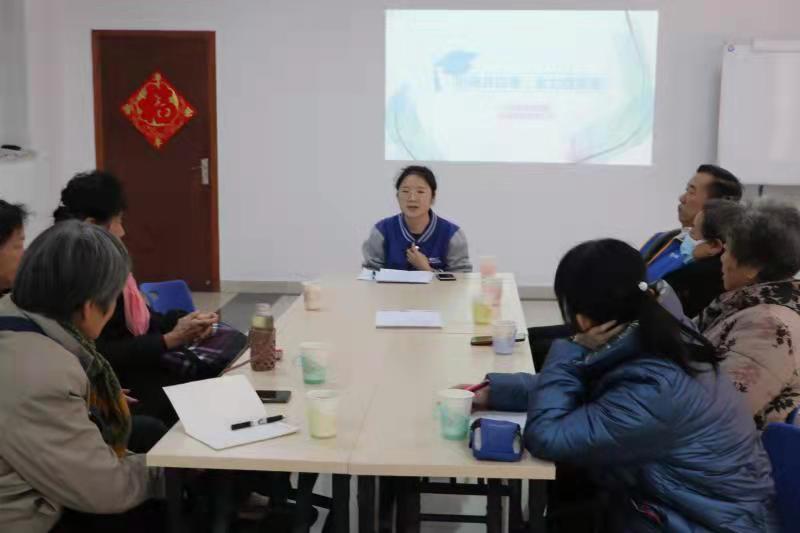 了解群体,献力献策。社区弱势群体——高龄独居老人是社工站的重点服务对象之一,也是“志愿星火”理事会成员的重点关注对象。借议事会的开展,社工站将前期北辛街社区高龄独居老人群体的走访情况,即每一服务对象的问题及需求向理事会成员进行说明。针对服务对象的问题,理事会成员纷纷献计献策,与社工一同商议该如何进行解决。就服务对象左阿姨的养老院问题,理事长高凤继表示有相关资源的了解,并向社工进行介绍,一同分析左阿姨是否符合条件,及后期的服务安排。