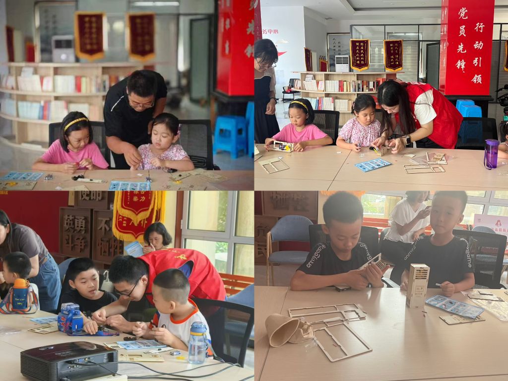 活动伊始,社工带领组员回顾了上一节活动内容及小组契约,巩固服务成果。然后通过“大家知道夏天有什么防暑道具呢”“那大家知道空调是怎么制作的嘛”等问题引出本节活动主题,并向组员们讲解了空调的科学原理、以及制作空调模型的步骤等,在社工的带领下,组员们一步步走进了空调的微观世界,探索着每一个零件背后的科学原理。手中的工具,仿佛是开启未来的钥匙,他们用心雕琢,将一块块简单的材料,转化为运转自如的空调模型。
