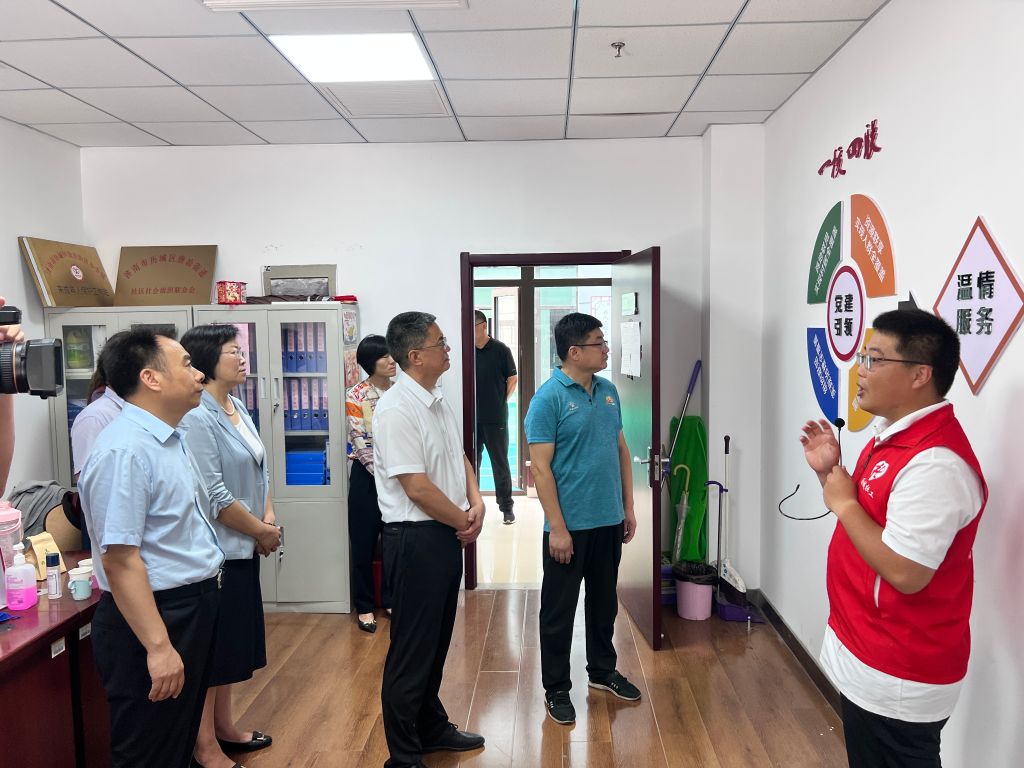 于学农指出“新时代社区治理和社会建设面临新要求,街道、社区、社工站要抄起手来,紧密联合,充分利用好各类资源,开展好志愿服务,以保障和改善民生、加强和创新社会治理为主线,主动服务全市工作大局”。