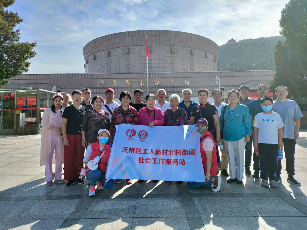 77年前,中国人民以顽强的意志和英勇的斗争精神,取得了抗日战争的伟大胜利!这是中国共产党发挥中流砥柱作用的伟大胜利。9月3日,北村街道俏银铃腰鼓队组织开展“喜迎二十大 永远跟党走”主题活动,组织辖区残疾朋友到济南战役纪念馆参观学习,重温革命历史,追寻红色足迹,传承红色精神。