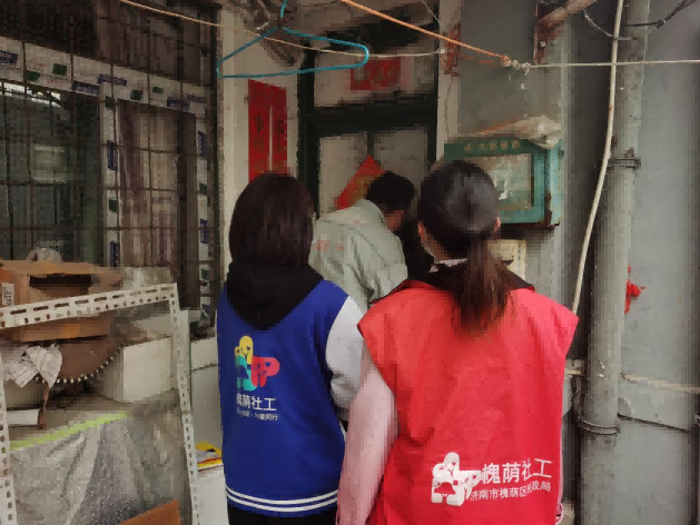 (社工与志愿者入户探访)