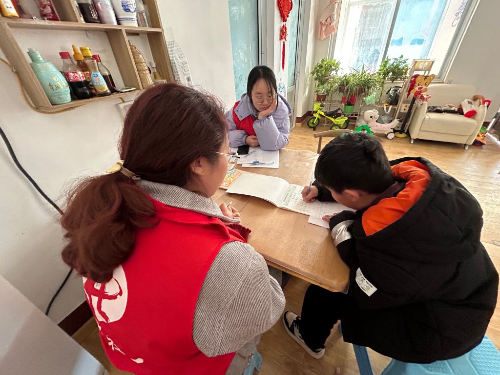 上次社工到豪豪家中服务时,结合其期末考试的反馈,社工在寒假期间为豪豪提供了针对性的学习辅导。在辅导过程中,社工观察到豪豪开始做作业时态度非常认真,一笔一划都力求工整。然而,随着时间的推移,他的耐心逐渐减弱,字迹也变得越来越杂乱。为了解决这个问题,社工在本次服务中特意为豪豪准备了满分作文练字贴。在练字开始之前,社工详细地向豪豪解释了练字对于培养良好学习习惯的重要性,以及在学习中保持书面整洁、字体端正的诸多好处。在社工的耐心陪伴和指导下,豪豪逐渐意识到写好字的价值,并在练字的过程中变得更为专注和耐心。