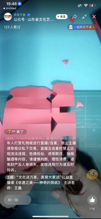 根据济南市疫情防控规定,自4月起所有中小学、培训机构暂停线下教学,开启线上网课教学模式。为促进学生在疫情期间身心健康成长,缓解居家隔离不安的心态,历城区全福街道社工站联合泉城书房开通了线上居家剪纸微课堂,邀请剪纸艺术家王鑫老师与学生共同走进非遗剪纸技艺。