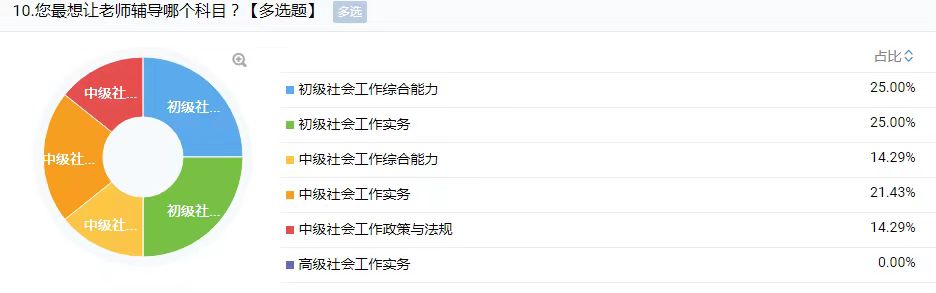 驻站社工提前进行关于社工考试需求调研,并形成统计图。平时利用“趵突泉街道社工考试交流”微信群,发送考试要点、复习计划和真题练习,引导参训人员常态化、阶段化学习备考。在学习群内,150多名学员通过每日一练熟悉真题题型,掌握真题考点。同时,各学员就考试方面的疑点和难点在群内进行讨论,在交流的过程中相互学习,巩固基础知识,补齐短板。