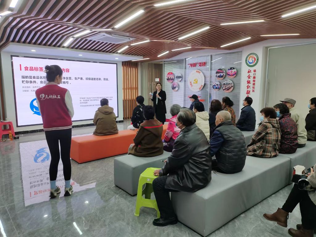 近期社工站经常接到辖区居民的咨询:“姑娘最近网上曝光那些添加剂害的我最近都不敢吃东西了,也看不懂包装袋里面的配料表,不知道吃了对身体怎么样,你们社工可以帮我们普及一下食品安全知识吗?让我们也能放心的享受美食啊”社工接到诉求后第一时间安抚居民紧张的心情,并着手链接资源,于3月16日开展饮食安全活动为辖区老年居民普及专业营养知识提升对食品的了解。