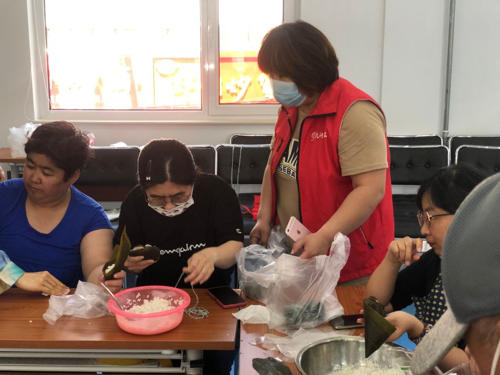 端午节,是我国的传统节日,蕴藏着悠久、深厚的文化内涵。为更好地弘扬中华民族传统文化,提升辖区居民文化素养,丰富居民的精神文化生活,提升居民幸福感,5月31日上午,无影山街道社工站在无影潭社区开展“艾香端午,粽享欢乐”包粽子活动。