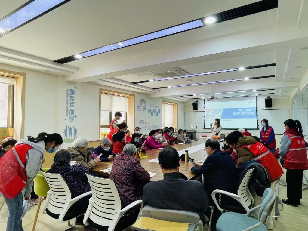 社工站通过前期调研,发现辖区内的老年人因无法熟练操作智能手机在日常生活中面临着挂号难、打车难、支付难等诸多问题,老年人具有智能手机学习需求却缺乏有效的学习渠道,为帮助老人更好地适应智能化信息时代,让老人更好地享受老年生活,特开展了8期志愿.益课堂之增能小组活动—智能手机学习班活动。 3月24日,智能手机学习班第一期正式开课,计划招募组员20名,第一期实际到场组员24名。