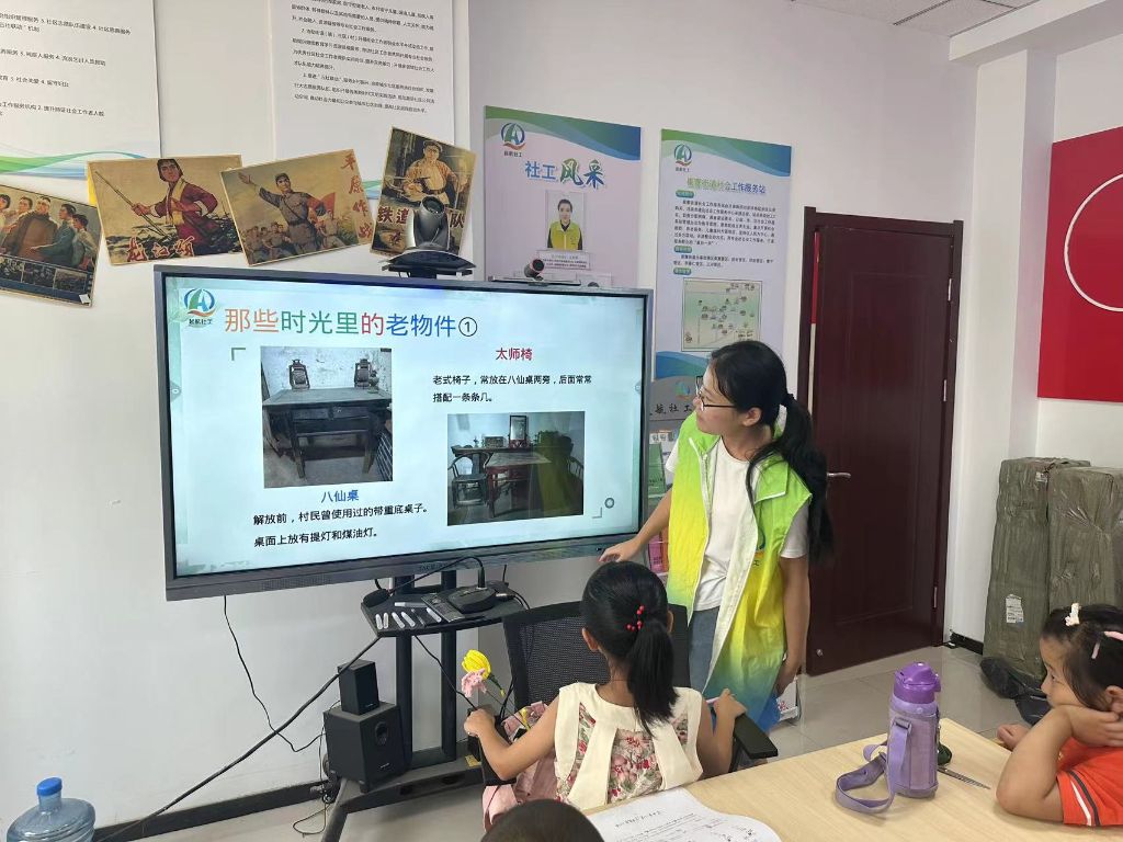 忆往昔,传薪火,每一个老物件都是一代人的记忆,都有自己独特的故事。社工以启发式教学为手段,引导小朋友们思考具有年代感的老物件及其用途,借此唤起对黄河故事的回忆。在小朋友们的眼中,这些老物件变成了见证历史的宝贵文物,也是讲述黄河故事的重要线索。通过互动与讨论,孩子们得以感受到黄河文化的博大精深,进一步激发了他们对黄河的兴趣。
