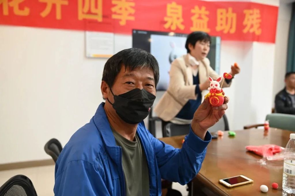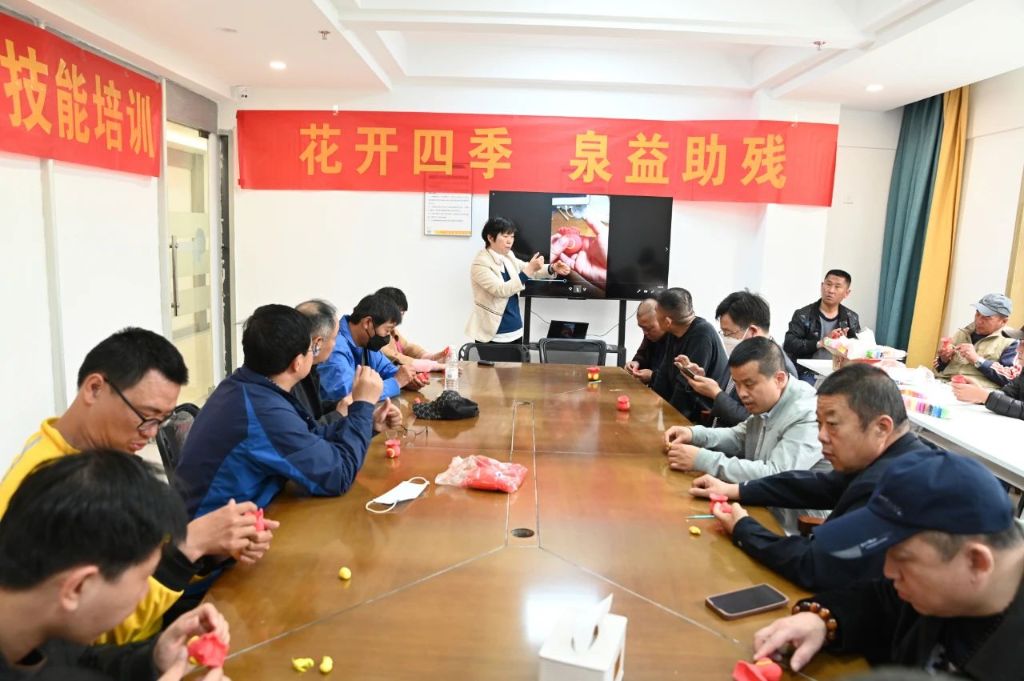 为弘扬中华民族优秀传统文化,促进残疾人灵活就业,帮助他们能够掌握一项创收技能,4月18日,东风街道社工站联合残联在“如康家园”残疾之家举行“花开四季”泉益助残活动。