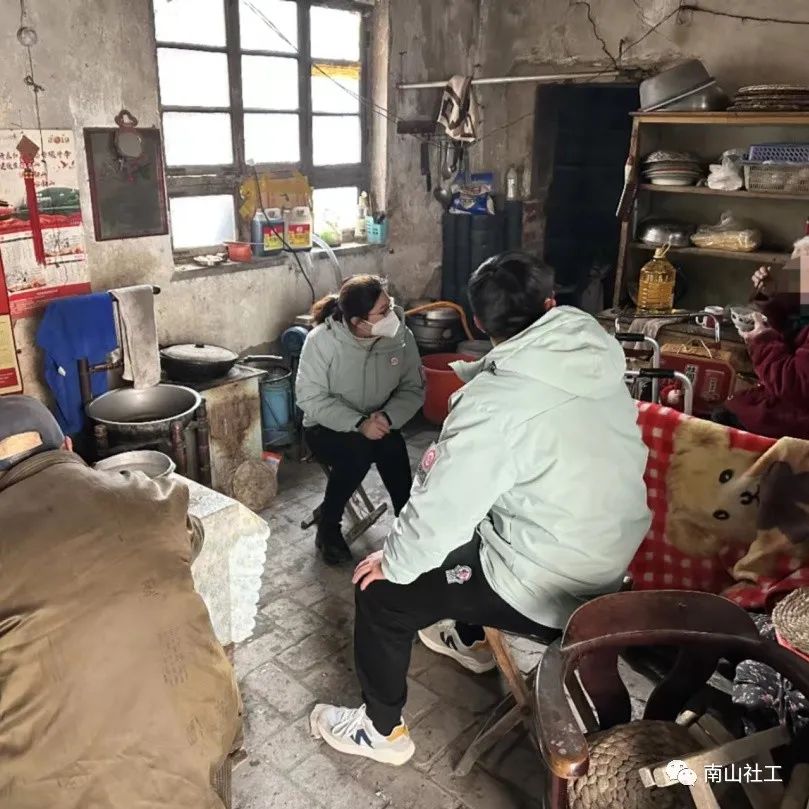 本次探访的是一个个案的服务对象,李奶奶今年80岁了,和79岁的老伴生活在一起。他们一共有两个儿子,但是不幸的是,她的两个儿子在三年的时间中相继去世,所以李奶奶的精神状态一直很差,也不愿意和别人接触,严重与社会脱节。有一次,李奶奶在家中不小心摔倒,腿部骨折,住院一段时间后出院回家了。之后,家里的日常生活都是由大爷来完成,洗衣、做饭、打扫卫生等很是辛苦,由于大爷身体也不好,家庭生活较为困难,社工了解情况后为老人签订了个案服务协议,从初次走访到持续跟进介入后与李奶奶建立了良好的关系 ,李奶奶从刚开始的主动回避,不愿与人说话,不知所措,到现在主动微笑地跟社工打招呼,与人交流有了显著的改善,看到这一切社工脸上露出了满意的笑容。这次春节走访主要是询问老人的身体状况和家庭情况,送上准备的慰问品,嘱咐老人要好好保重身体,注意保暖御寒,倾听老人的心声和诉求,交谈中洋溢着浓浓的关爱之情。